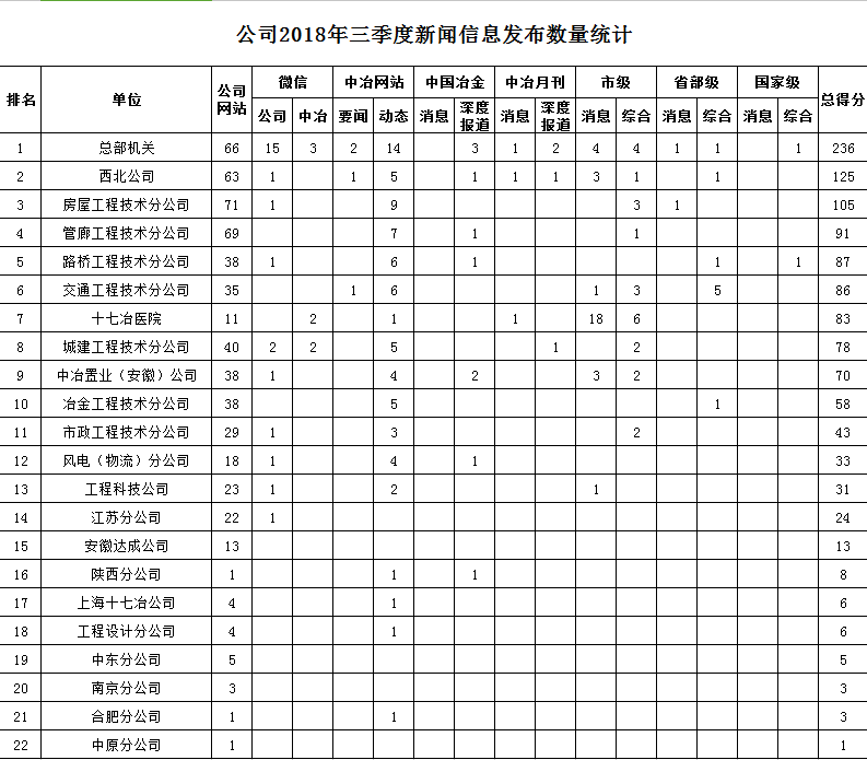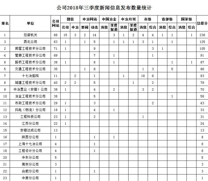 公司2018年三季度新闻信息发布数量统计