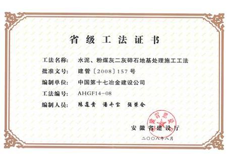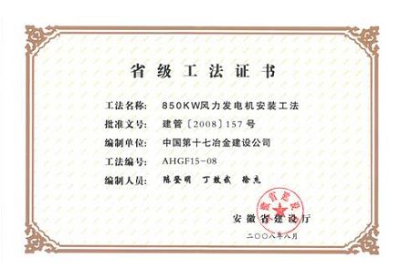 4月9~10日,在全省“建筑业新技术应用示范工程”、“省级工法”和“用户满意住宅工程” 获奖单位经验交流会及省建设工程质量安全工作会议上,十七冶申报的《850KW风力发电机安装工法》和《水泥、粉煤灰二灰碎石地基处理施工工法》两项工法获得省级工法,受到隆重表彰。