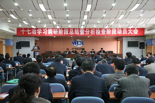 4月16日下午,十七冶在总部会议厅召开学习实践科学发展观学习调研阶段总结暨分析检查阶段动员大会。公司领导康承业、王建国、彭毅忠、唐灶荣、尹万云出席会议。全公司处以上领导干部、各单位学习实践活动领导小组成员和办公室成员130余人参加了会议。