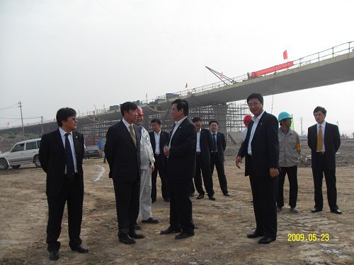 多位董事认真视察了滨江大道淮河路NE定向匝道桥钢箱梁段、下沉式地道底板、侧墙、路面二灰碎石基层等项目的施工,他们对滨江大道1.1标的工程质量、进度、安全和施工现场的文明施工给予充分肯定。