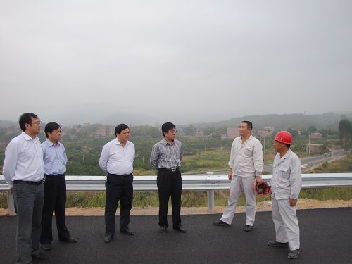 1111,公司董事长、党委书记康承业在建设公司副总经理唐灶荣、总经理助理汤小建和路桥公司经理陈阳的陪同下,来到十七冶路桥公司广西马梧高速公路和市政工程项目进行视察。