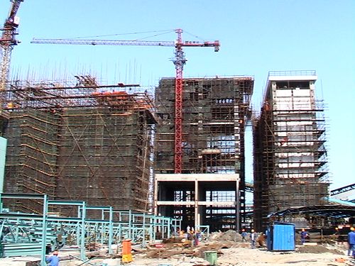 5月5日,十七冶上海宝钢浦钢罗泾二步工程好戏连台:炼钢扩建主厂房钢结构开吊;煤压块项目压块室实现框架结构封顶。