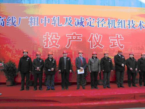 113下午15时,南钢高线厂粗中轧及减定径机组技术改造工程投产仪式在南钢高线厂隆重举行。十七冶副总经理喻世功,总经理助理叶群彬,机电公司经理唐克斌及党委书记周美初出席了投产仪式。