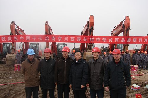 116上午,南京河西莲花村工地彩旗招展,礼炮响彻云霄。十七冶南京河西莲花村中低价商品房项目Ⅱ标段及B组团经济适用房桩基工程开工仪式在这里隆重举行。