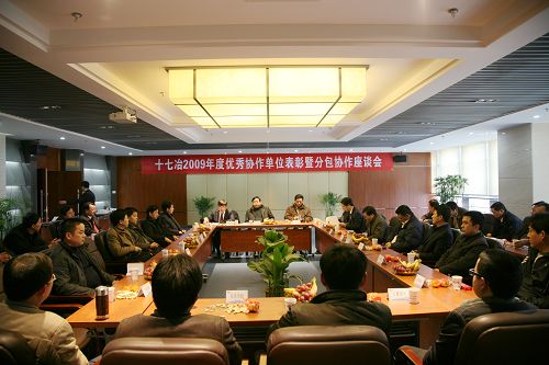元月16日下午,修葺一新的公司综合会议室灯火通明、气氛热烈,十七冶“2009年度优秀分包商表彰暨分包协作座谈会”在这里隆重举行。公司副总经理唐灶荣、总经理助理王青山,公司机关、二级公司、分公司、公司项目经理部相关负责人以及17家分包商企业负责人参加了会议。会议由公司项目监管部部长范文刚主持。