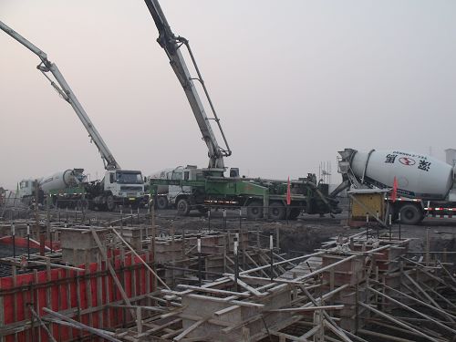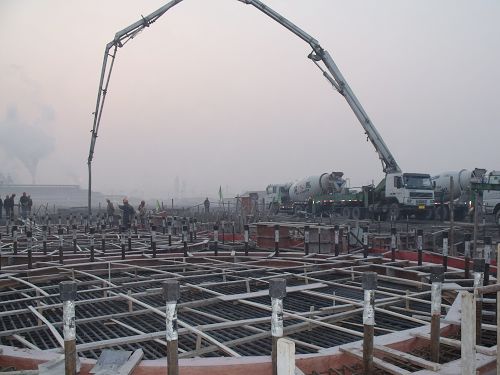 117718分,伴随着爆竹声响, 两台砼泵车在长江钢铁技改项目炼铁工程1#热风炉基础上空轻舒长臂,将热气腾腾的砼输送到热风炉基槽中。1#热风炉基础是长江钢铁技改项目炼铁工程浇注的第一座大体积砼基础,这为后序热风炉炉壳的安装奠定了基础。