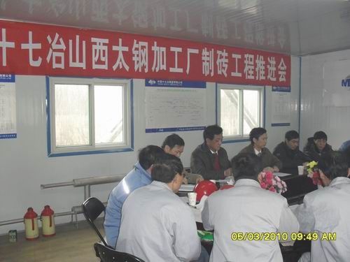 最后,尹万云总工程师提出加工厂制砖工程要做到四个紧密结合:干好制砖项目与十七冶产业延伸紧密结合;抓安全、质量工作与公司安全质量提高年紧密结合;干好制砖项目与实现公司核心竞争力紧密结合;干好制砖项目与培养、锻炼工程技术人员紧密结合。他要求项目部的同志要以客户关注为着力点,在管理上精细务实,加强质量、安全意识,加大相关投入,要不怕压力,意志要坚定,干好制砖项目,锻炼一批人才。