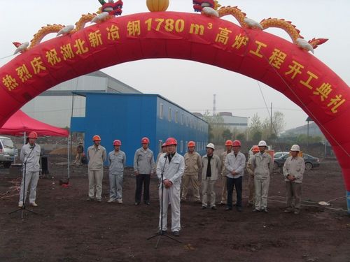 4月6日上午9时08分,十七冶湖北新冶钢1780m3高炉工程举行了隆重的开工仪式。湖北新冶钢Ⅱ期工程指挥部、炼铁项目部领导与十七冶机电公司党委书记周美初、十七冶湖北新冶钢项目部全体管理人员,高炉工程的土建、安装协作队伍等参加了高炉工程开工仪式。 仪式上,十七冶湖北新冶钢工程项目经理李春怀和湖北新冶钢炼铁项目部常务副经理柯显峰分别致词。湖北新冶钢有限公司总经理助理、湖北新冶钢Ⅱ期工程指挥部常务副指挥长黄宁安宣布工程开工。