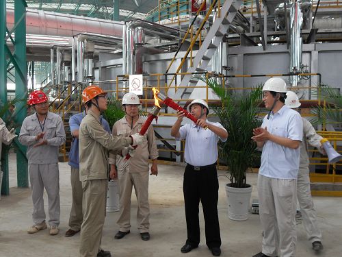 818上午8:28,湖北新冶钢集团有限公司总经理钱刚用火种点燃了273无缝钢管厂环形加热炉,至此,273无缝钢管厂环形加热炉烘炉正式开始。