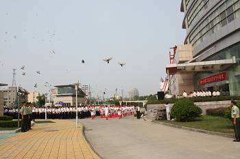 首先,举行升旗仪式。威武的升旗手迈着矫健的步伐,来到升旗台,在武警战士的护卫下,在庄严的国歌声中,五星红旗冉冉升起,中冶司旗、十七冶司旗也同时飘扬,此刻也升起了十七冶人新的理想、新的希望。