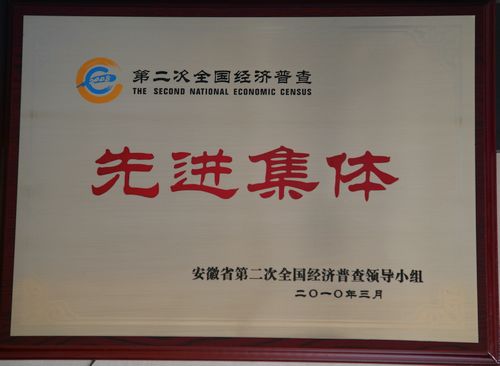 公司获“安徽省第二次全国经济普查先进集体”称号