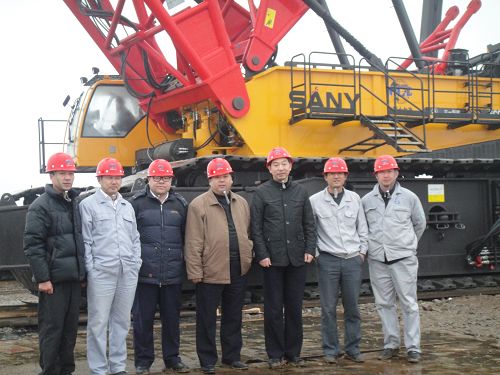 唐灶荣副总经理首先来到位于1#风机基础旁的十七冶新添置的650T履带吊前,上下仔细查看,在询问了该吊车的性能和操作人员的配备情况后,对风电公司陪同领导说:“这是十七冶最大的设备,你们一定要把这台设备管理好、使用好。要配备技术最好、服务最好的操作人员,做到安全上万无一失。尤其在滩涂上施工,软地基条件下一定要采用科学的施工方案”。在视察完现场后,唐灶荣副总经理又听取了项目负责人关于工程进展、安全、质量等方面的情况汇报。他对该项目在没有滩涂施工经验的条件下,工程能有如此进展,给予了充分肯定,并要求项目部一定要执行项目管理通则,做到低成本、高效率、高品质、高服务,尤其是要选择好合格的分包队伍,这样就能避免施工过程中的被动。