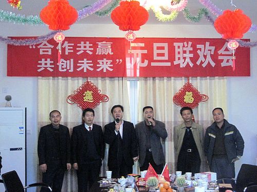 2009年12月31日下午,湛江钢铁工程场地平整项目经理部四楼会议室张灯结彩,火红的灯笼高高挂起,在喜庆的中国结的映衬下,印有“‘合作共赢,共创未来’元旦联欢会”的横幅显得分外耀眼。