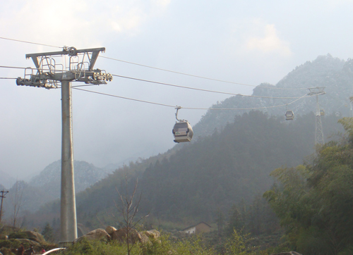 佛教名山“九华山”蜿蜒在青阳县境内,南望黄山,北瞰长江,方圆120公里,最高峰十王峰海拔1342米。在中国佛教四大名山中,九华山独领风骚,以“香火甲天下” 而闻名于海内外。如今,十七冶人为这座名山增添了一道崭新的风景——九华山花台索道。