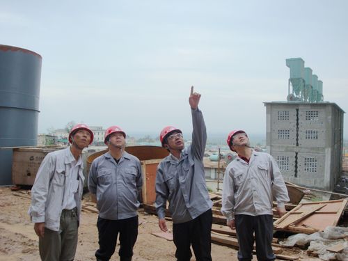 康董事长一行到达工地后,驱车四十多公里,首先来到矿山廊道工程施工现场,仔细查看了工程质量、安全、施工进度及现场文明施工等情况。对项目经理部前期的年产440万吨粉磨站主体工程的各项工作给予了肯定,对项目管理团队良好的精神面貌表示满意。他指出,在业主的帮助下,项目部全体人员克服了重重困难,在工程安全、质量、进度等方面均取得了很好的成绩,得到了业主的充分认可。康董事长还要求项目部认真抓好安全质量工作,注意关心员工生活,合理安排好作息时间,找出工作中存在问题,继续再接再厉,把各项工作做得更细,更扎实。