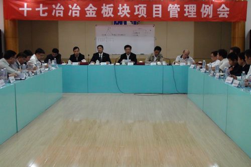 10月5日下午,十七冶集团公司召开2010年三季度冶金板块工程项目管理例会。集团公司董事长康承业、副总经理喻世功,总经理助理汤小建、王青山,总经理助理、上海分公司经理钟华彪,副总工程师李中元及集团公司总部机关各职能部门、冶金板块各项目负责人、冶金工程技术公司领导班子、相关职能部门领导参加了会议。会议由冶金工程技术公司副经理王德林主持。