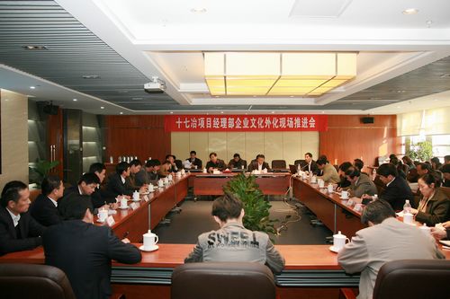 115,公司召开项目经理部企业文化外化现场推进会。公司董事长、党委书记王建国出席会议并做重要讲话,公司副总经理唐灶荣出席会议。各二级公司分管领导、项目经理部负责人及有关负责同志参加了会议,会议由公司组织文化部部长韩伟群主持。