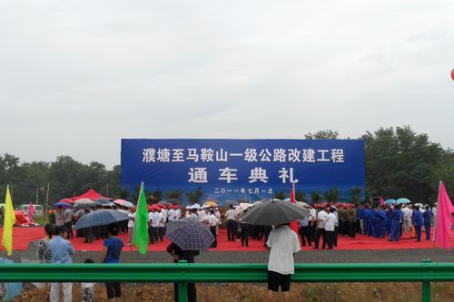 71上午9时,路桥工程技术公司承建的濮塘至马鞍山一级公路改建工程举行通车典礼仪式。马鞍山市市长张晓麟、交通局长邵许及施工单位、设计单位、监理单位代表参加了典礼仪式。