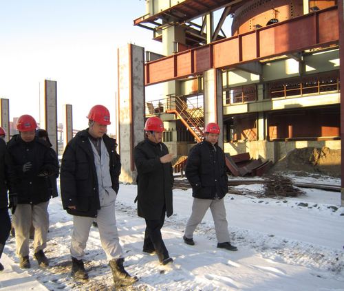 32,公司副总经理唐灶荣,总经理助理、冶金工程技术公司经理唐克斌,项目监管部部长范文刚,预决算部部长张伟典一行来到吉钢工程施工现场检查指导工作。