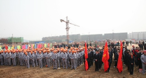 34下午,全市共青团服务重点工程建设工作启动仪式在我公司金福花园安置房项目建设工地现场隆重举行。