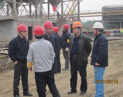 316日上午,集团公司副总经理唐灶荣在项目部常务副经理夏映杰的陪同下,对梅钢二期公辅工程施工现场进行检查指导。