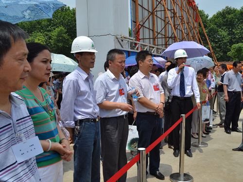 代表们视察了正在施工中的一期工程“星舞台”,其建筑面积23000㎡,于59曰开工星隆国际城项目部的员工千方百计克服施工场地夹小、土方外运时间限制等困难,积极创造条件加速施工进程。一个月来,完成挖运土方97000 m3、封砼垫层5000㎡、绑扎钢筋1000余吨。在视察、听取施工进展状况的汇报后,镜湖区委书卢仓报赞扬说,十七冶是国有大企业,管理规范,节点意识强,文明施工好,企业文化在芜湖市很有影响力,希望十七冶项目部再接再厉,为芜湖市的发展发挥更大的作用。