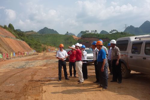 8月10日下午,广西壮族自治区交通工程质量监督站党委书记兼副站长杨胜坚在广西交通运输厅安全监督处、高速公路管理局、公路管理局和百靖高速业主、监理等单位相关负责人的陪同下,对路桥工程技术公司承建的百靖高速公路BJ--A05标项目进行了一次安全、文明施工大检查。 杨胜坚书记一行重点检查了项目桥梁预制场、坡六遥二号大桥和隧道进口处等施工现场,检查组对现场安全文明施工工作给予了充分的肯定。检查组希望项目部能继续保持现场安全文明施工的良好环境,确保工程质量,早日建成百靖高速,为广西人民造福。