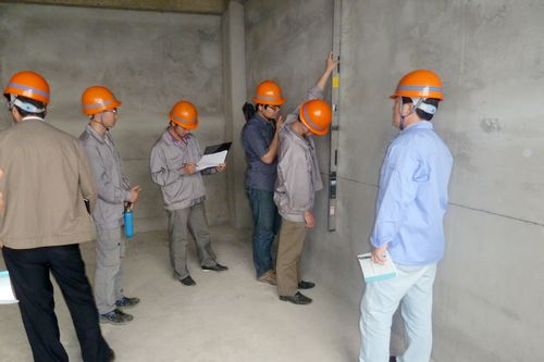检查组在听取项目部对本工程质量管理情况的简要汇报之后,对现场的混凝土结构、墙体砌筑、抹灰、幕墙龙骨及水电安装进行了仔细检查,并对工程实体进行了实测实量抽查。随后,检查组还对项目部的质量保证体系,各项质量管理制度的建立,技术方案的编、审、批,质量措施的落实,工程材料的质量保证等技术质量资料进行了核查。