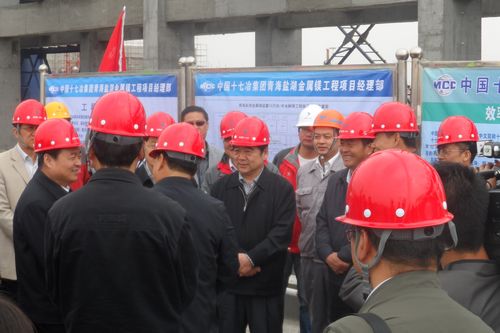 528,中共青海省委副书记、省长郝鹏到中国十七冶集团冶金工程技术公司承建的青海盐湖金属镁项目工地视察工程建设情况。青海省政府秘书长高华,海西州委书记辛国斌,格尔木市委副书记、市长罗保卫,青海盐湖工业集团金属镁一体化项目总指挥谢康明等参加了视察工作。