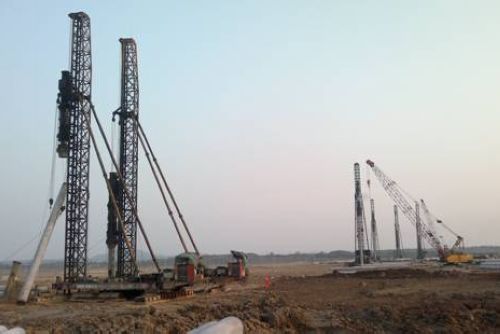宝钢湛江炼钢主厂房桩基工程包含各类PHC管桩共计2400余套,据前期中冶武勘院地质情况分析,炼钢主厂房区域地下包含回填土、玄武岩、孤石、多层不同厚度沙层等复杂地质状况。炼钢主厂房桩基工程施工时间紧、任务重,地质条件复杂,又恰逢沿海地区台风雨季及酷暑双重影响,项目部精心组织,科学规划,战雨天,抢晴天,采取多种方法先期对玄武岩进行判别清除。特别是进入9月后,项目部根据广东公司安排召开桩基工程推进会,重新对现场施工资源进行布置,并设立区域责任制,对区域内责任人进行节点考核。工程自
