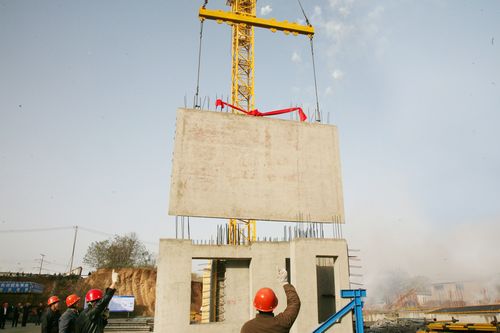 在施工现场,随着尹万云总工程师一声“起吊”令下,首片墙板缓缓升空、移动,准确降落在预定位置,随即在现场技术人员的指导下,安装工人准确就位、调直、固定。接着便是第二块、第三块……该工程不仅是中国十七冶集团首栋住宅产业化示范楼,也是马鞍山市住宅产业化试点项目。示范楼项目的实施,标志着中国十七冶集团绿色住宅产业化转入实施应用阶段。中国十七冶集团将以示范楼建设为契机,加速构建“三园一院一中心”绿色住宅产业化体系,用绿色施工的方式,推进绿色建筑产业的发展,覆盖从研发、设计、生产制造、装配施工、到检试验全流程产业链体系和人才培训中心。将马鞍山引入一个建筑品质更高、寿命更长、节能环保性能更突出的建筑工业化全新时代。