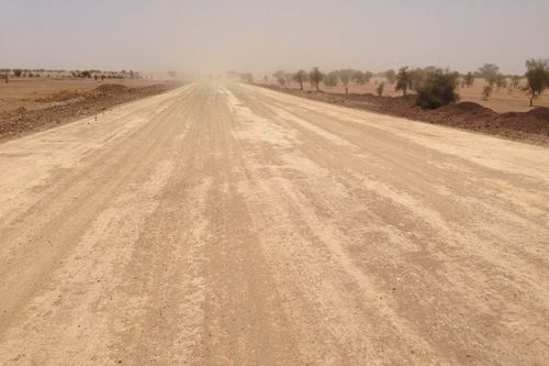 毛里塔尼亚希望三角洲公路工程Ⅰ标段全长81km,地属Kiffa区,路基借土填方81万立方米。该标段位于毛里塔尼亚最为贫困的地区,交通蔽塞,自然环境非常恶劣。毛塔自进入枯水季节后,连续8个月没有下雨,现场沙尘肆虐,温度高达50°C以上。项目部千方百计创造条件,克服工期紧、任务重、物资匮乏、水资源奇缺、材料运距较远等诸多不利因素,精心组织,科学施工,利用枯水季节的晴好天气,抢抓工期,保障雨季到来之前完成既定目标任务。项目部全体参建人员积极践行“高效严谨、精心务实”的作风,以“一天也不耽误、一天也不懈怠”的工作态度,迎难而上,攻坚破难,不断掀起一个个施工高潮,工程施工稳步推进,安全质量有序可控,路基顺利实现全线贯通,为推进下阶段各项施工任务奠定了坚实的基础。