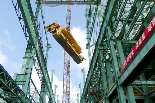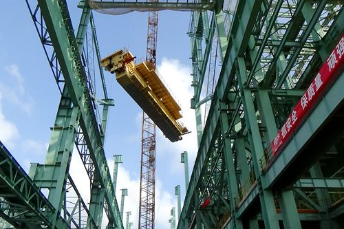 湛江钢铁炼钢工程首台500吨行车正点吊装成功
