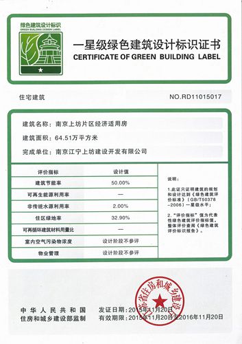 上坊经适房项目获江苏省星级绿色建筑设计标识证书