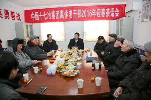 24日下午,中国十七冶集团召开离休老干部2016年新春茶话会,公司董事长、党委书记喻世功,纪委书记、副总经理蔡进为他们送上新春的祝福和问候。