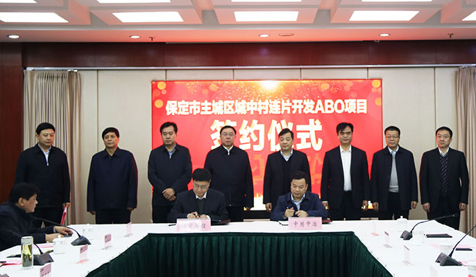 12月9日下午,保定市政府与中国中冶联合体就保定市主城区城中村连片开发ABO项目举办了签约仪式。保定市委副书记、市长郭建英,市委常委、常务副市长李国勇,副市长张志奎,市政府秘书长王保辉;中国十七冶总经理、党委副书记刘安义,中冶武勘董事长臧中海,中国二冶总经理高文华,中冶京诚副总经理韩冰共同出席并见证签约。保定市国控集团董事长、党委书记陈树存和十七冶副总经理张杰代表双方签订了合约。