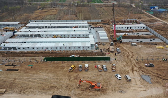 近期山东省疫情迅速蔓延,西北公司惠民县高官项目部驰援地方建设惠民县临时隔离点。截至3月16日,所有板房基础已施工完成,临时用电,临时用水已接通,现场板房到货330套,剩余板房将陆续运到现场,6栋板房正在搭设,水电预埋管开挖安装,配套设施已安装完成,围挡安装完成60%。现场大挖机5台,小挖机6台,吊车5台,叉车1台,平板车5台,现场施工人员350人正加紧施工。自开工以来,建设队伍24小时不间断争分夺秒,确保项目3月17日完工并达到入住要求。
