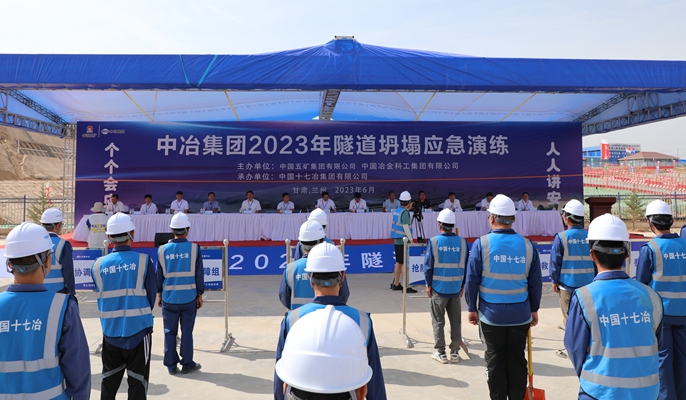 6月27日,中国五矿、中冶集团、中国十七冶在连霍高速兰州清忠段项目凤凰山隧道联合举行2023年隧道坍塌应急演练。中冶集团副总工程师、安全总监王孜睿,中国五矿安环部处长马井泉,榆中县应急管理局副局长金懿成,榆中县消防救援大队副队长李生中、中国十七冶集团副总经理周金龙及中冶交通、中国华冶、中冶路桥、中国二冶、中国十九冶等单位参加演练。