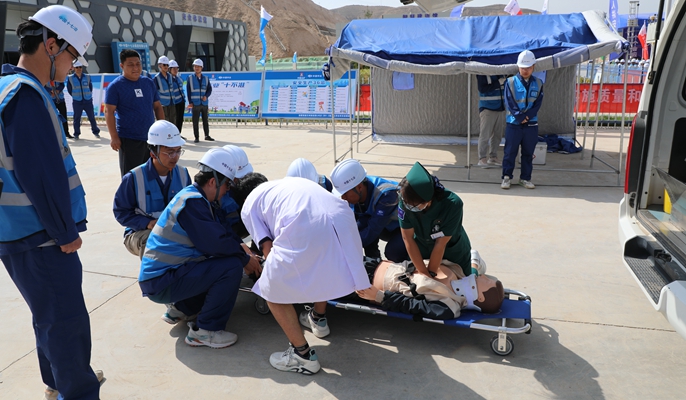 演练模拟隧道拱顶发生“坍塌”,导致现场工人遭到掩埋的事故场景。项目应急指挥部、应急救援队及现场管理人员迅速反应,按照处置手册要求迅速开展紧急通讯联络、警戒区域设置、坍塌区域检测、被困人员搜寻营救等工作。在各方人员的齐心救援下,被困人员成功获救,应急演练圆满完成。此次演练全面展示了发现险情、事故报告、应急响应、险情排查、技术研判、紧急施救、善后处理等各个应急处置环节和过程,检验并提升了中冶集团在建项目应对隧道坍塌突发事件的应急处置能力。演练结束后,金懿成副局长、周金龙副总经理、中国十七冶西北公司安全总监王建华分别进行点评。