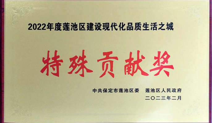 获评“2022年度莲池区建设现代化品质生活之城特殊贡献奖