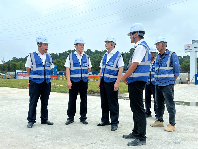 喻世功董事长实地查看了现场施工情况,听取了项目负责人关于工程进度、安全生产、质量管控、项目履约、农民工工资支付、经营管理等方面的工作汇报,围绕项目生产经营和党的建设提出要求。他指出,要以党的二十大精神为引领,坚定发展信心,充分发扬艰苦奋斗精神,牢牢把握“学思想、强党性、重实践、建新功”的主题教育总要求,强化责任担当,压实主体责任。要紧紧盯住生产履约这个关键环节,明确项目建设各阶段的重点工作内容,以调查研究为抓手,在调查中寻思路、找方法,做到早谋划、早策划,全方位提升项目安全、进度、履约等管理水平。