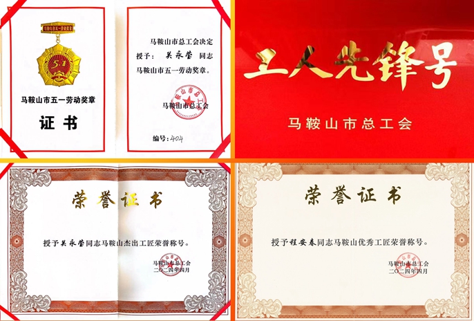 在马鞍山市庆“五一”暨职工劳动和技能竞赛先进集体、先进个人命名大会上,中国十七冶技术质量管理部关永莹同志获“马鞍山杰出工匠”,并被授予“马鞍山市五一劳动奖章”,技术质量管理部程安春同志获“马鞍山优秀工匠”,十七冶技术中心获“马鞍山市工人先锋号”。