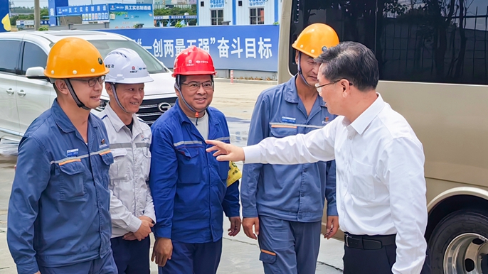 8月13日,中国宝武党委书记、董事长胡望明一行,到中国十七冶承建的宝钢湛江钢铁零碳高等级薄钢板工厂项目炼钢工程调研。