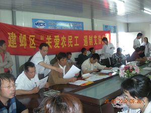 为进一步关爱农民工,提高工地农民工的疾病预防意识。526日上午,滨江大道项目部农民工业余学校在项目部会议室会同南京市建邺区双闸街道、区卫生疾控中心、双闸社区卫生服务中心联合举办了一场别开生面的“让疾病预防宣传进入工地”活动,集中对参与该项目工程建设的60名农民工进行疾病预防的宣传教育。