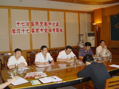 922,十七冶医院党委中心组召开扩大学习会,专题学习贯彻党的十七届四中全会精神。