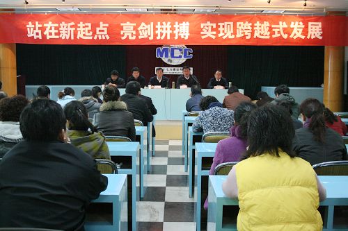 会上,机电公司党委书记周美初传达了十七冶董事长、党委书记康承业和总经理王建国在十七冶机关全体员工大会上的讲话精神。他强调要全面落实康董事长和王总经理的讲话精神,通过此次会议不仅力促今年各项指标的完成,而且要为明年跨越式发展做好充足的各项准备工作,团结起来,为实现公司跨越式发展而努力奋斗。