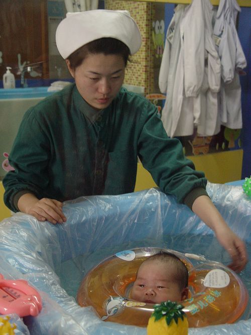日前,十七冶医院开设新项目,为新生儿提供抚触、按摩、游泳等服务。据专家介绍,婴儿游泳以及对他们进行全身抚触能够起到增加胃肠蠕动,促进排便、减轻黄疸,加深睡眠,促进骨骼及肌肉发育,增强肺活量等生理上的作用,并且通过边按摩边和婴儿交流,能够消除他们孤独、忧虑等不良情绪,有利于心理发展。