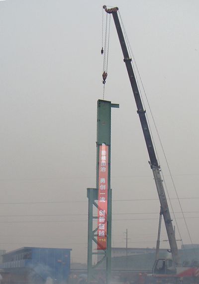 元月三十日上午8点58分,随着一声哨声,由十七冶承建的常熟龙腾特钢提升技改炼钢连铸工程的第一根钢柱,在吊车舒展的铁臂下缓缓地插入基础中,标志着龙腾特钢工程已进行厂房钢结构的安装阶段。