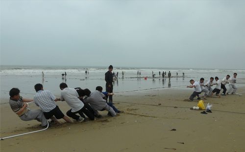 广阔蔚蓝的海洋,金黄柔软的沙滩,清凉微咸的海风,这就是湛江市东海岛的海边长滩。430,湛江分公司“庆‘五一’员工拔河比赛”在这里隆重举行。随着裁判的一声令下,“一、二、三,一、二、三……”随着阵阵加油声,绳子终于被拔过了河界,沙滩上发出了阵阵欢笑声。