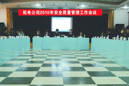 220号下午,机电公司召开2010年安全质量管理工作会议,学习传达贯彻十七冶2010年安全质量管理工作会议精神,部署本公司2010年质量安全工作。机电公司领导、机关部室负责人、各工程处主任及项目经理40余人参加了会议。会议由党委书记周美初主持。